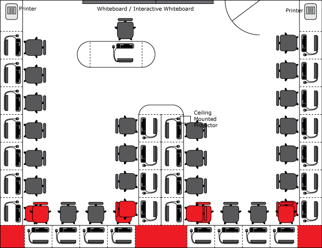 3. Fjords - series of tracks with workstations down the sides and at the ends, 26 (+4) workstations + teacher